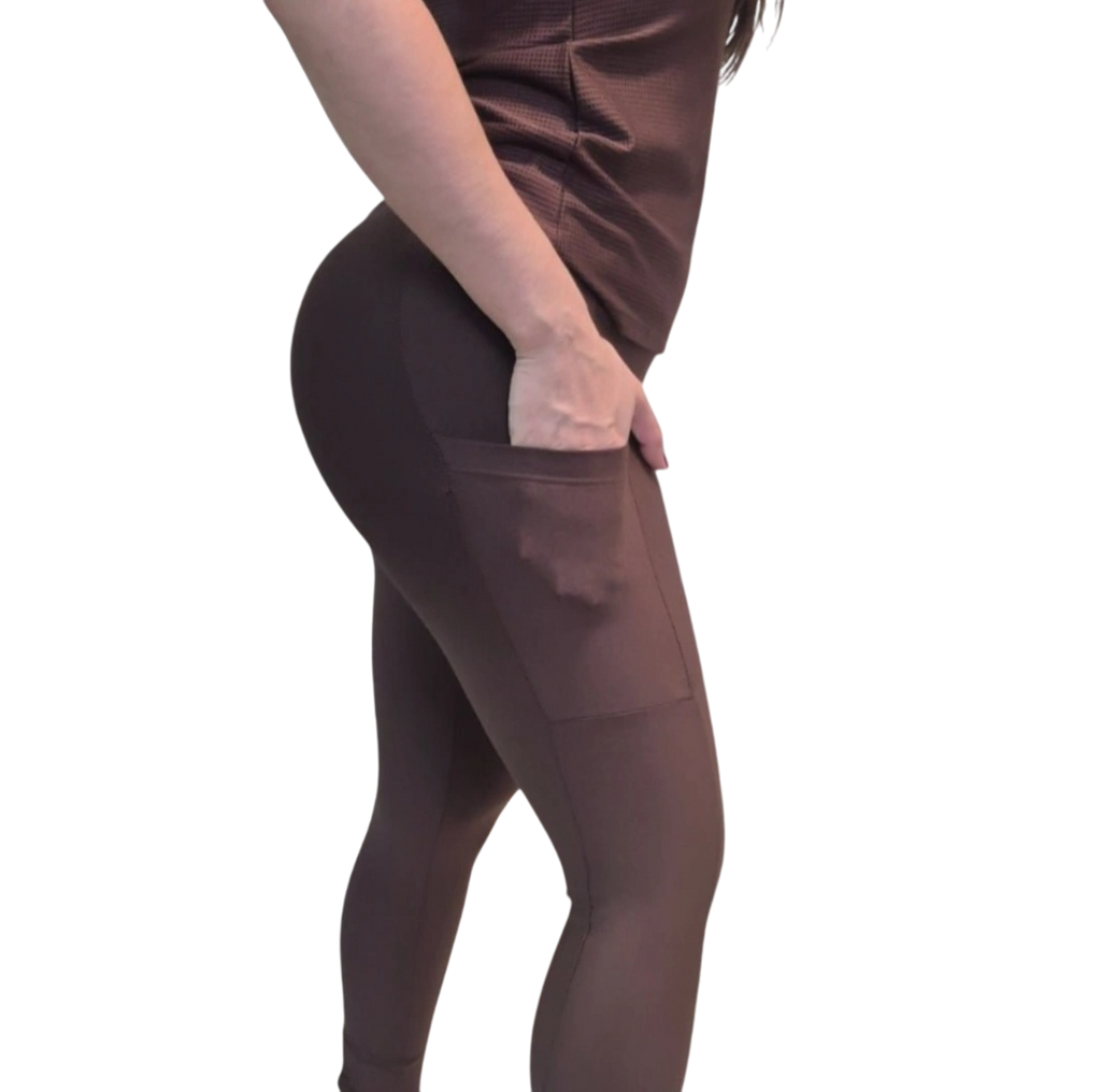 Legging Cós Alto Com Bolso Marrom — Authentic Girl